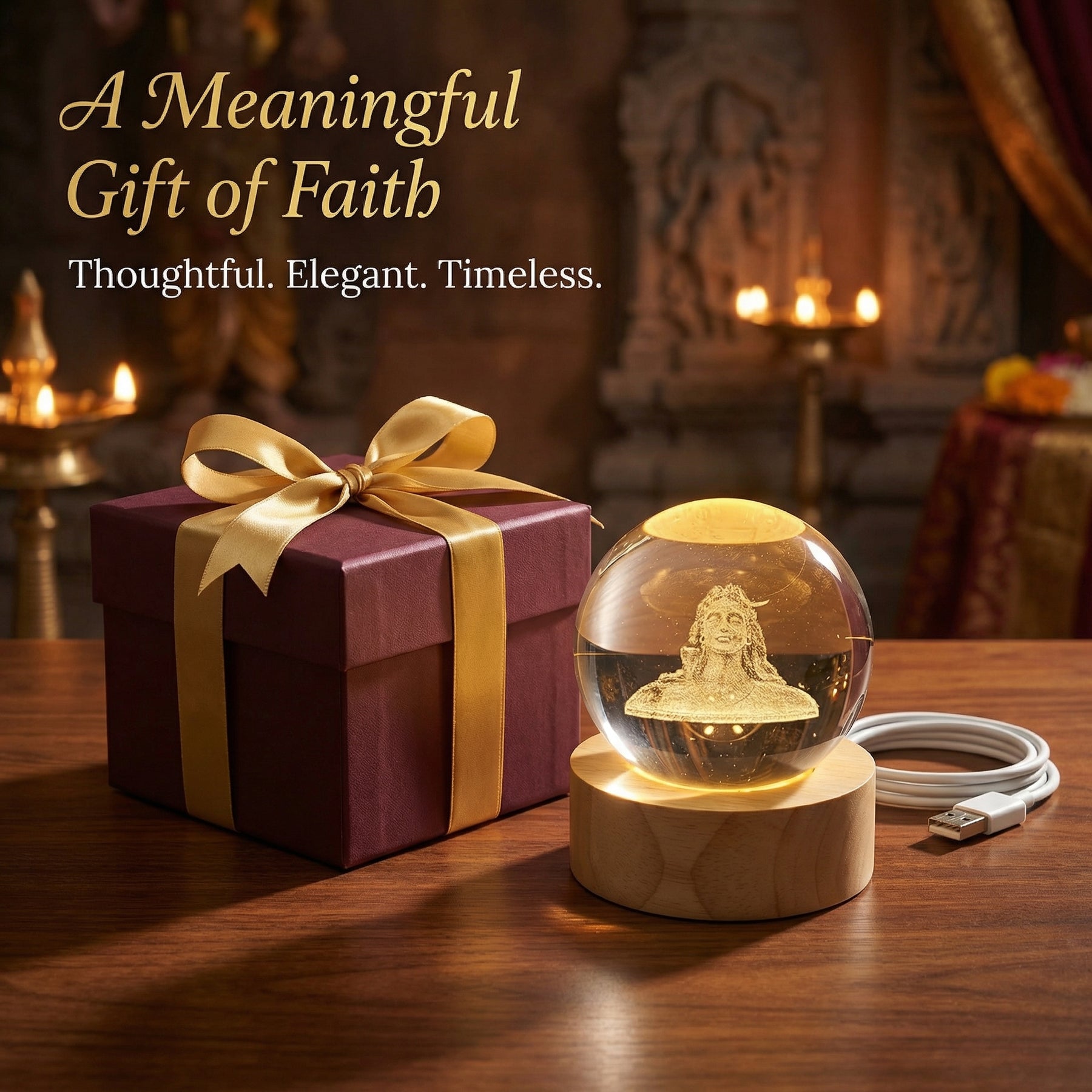 Elevate your space with a perfect blend of spiritual elegance, serene ambiance, and artistic beauty with the Mokshima Adiyogi 3D Crystal Ball Lamp. This stunning decor piece is crafted with a high‑quality K9 crystal sphere etched with an intricate 3D image of AdiYogi — the embodiment of divine energy, inner peace, and spiritual power. Whether for meditation, sacred space, or home ambiance, this lamp brings a touch of positive energy and timeless charm to any room. ✨
