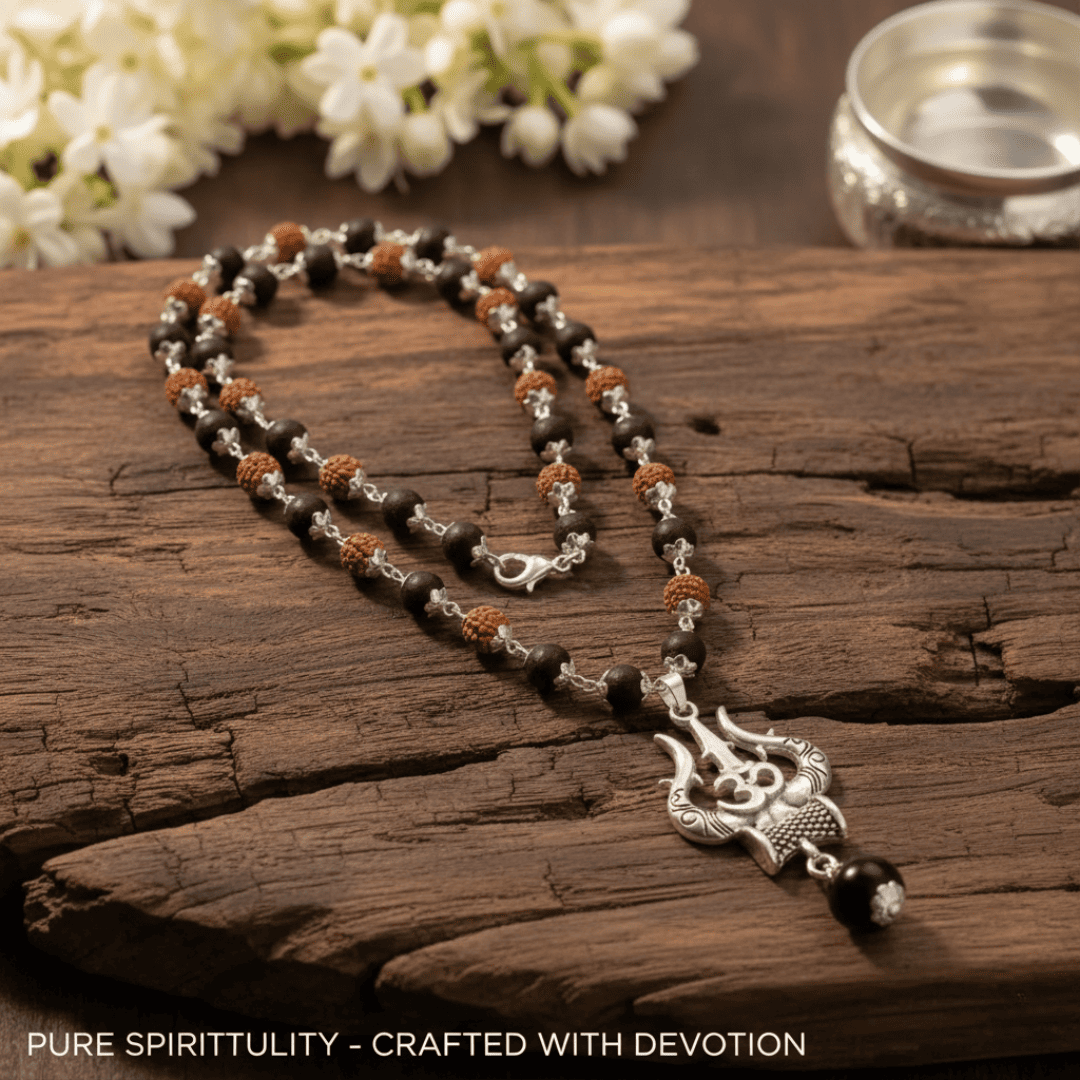 Karungali Mala with Om Shiva Trishul Pendant