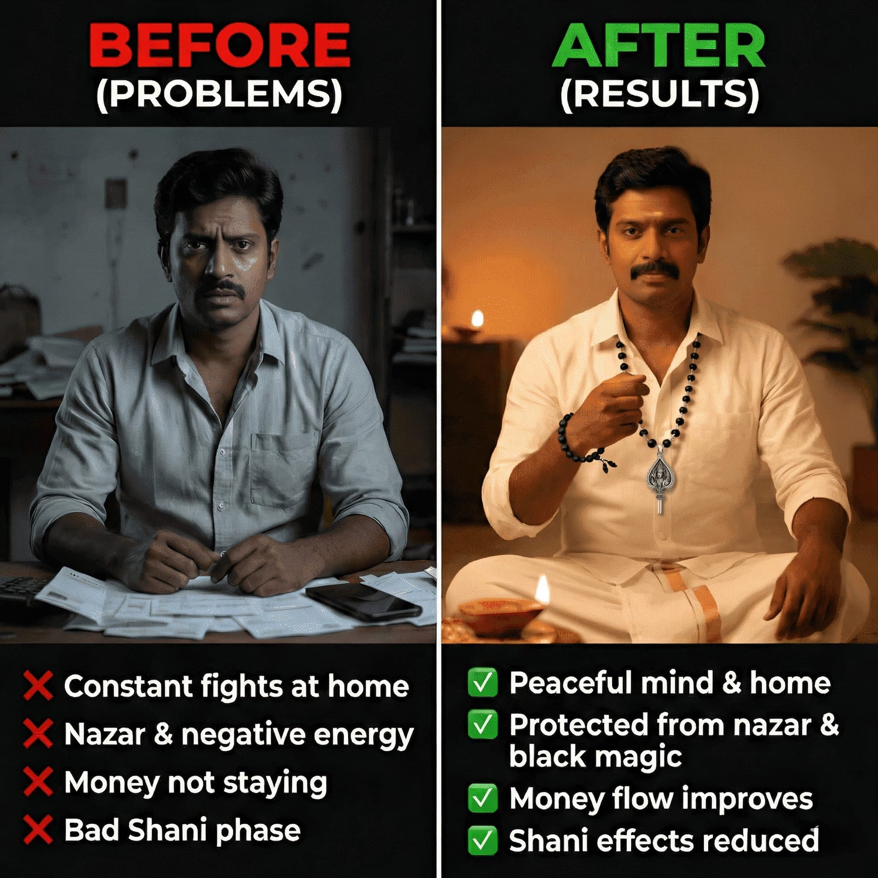 🔹 Authentic Spiritual Craftsmanship Handcrafted with love and devotion, each bead is original Karungali wood — smooth, durable, and full of sacred energy.